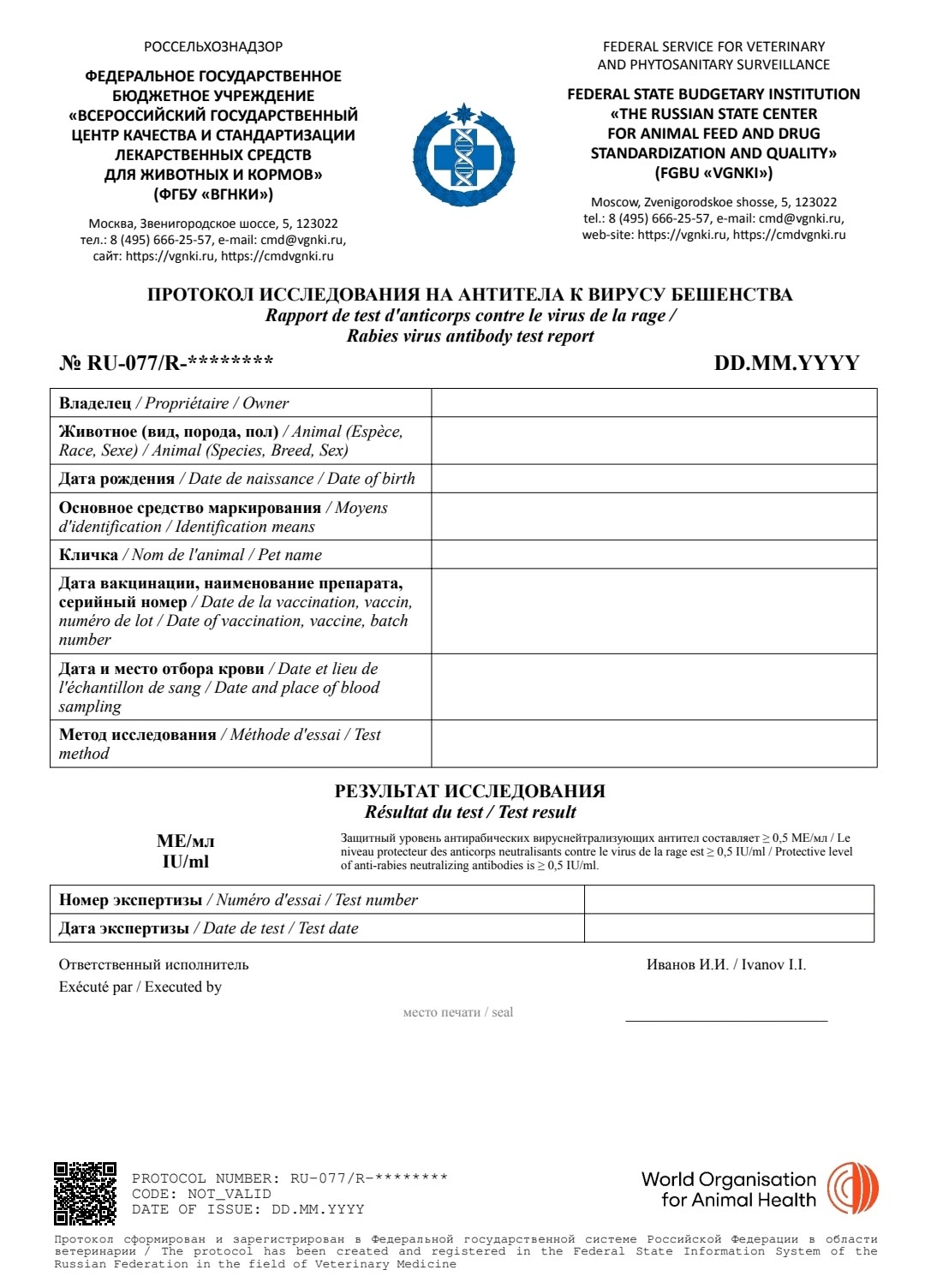 С 1 декабря 2025 г. ФГБУ "Всероссийский центр качества и стандартизации лекарственных средств для животных и кормов" и ФГБУ "Федеральный центр охраны здоровья животных" переходят на электронный формат оформления протоколов исследований на титры антител к вирусу бешенства.