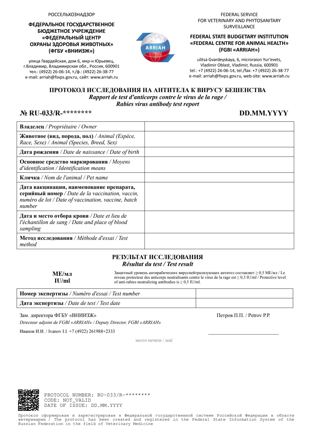 Протоколы будут оформляться в электронном виде. Проверить подлинность и найти протокол можно по ссылке: https://ecert.vetrf.ru/pets/protocol/search. Владельцы животных по-прежнему будут получать протокол на бумажном носителе. На протоколе появится QR-код, который позволит подтвердить подлинность протокола и проверить его данные.